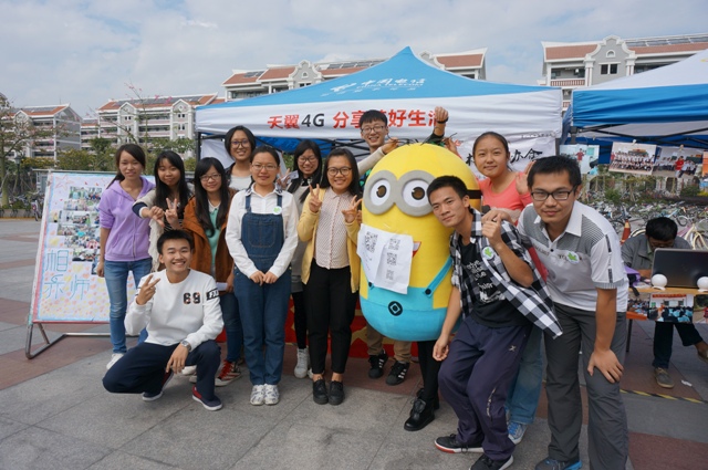 他们或扮演小黄人或分发礼品,以多种方式为自己的实践队拉票,现场火爆。