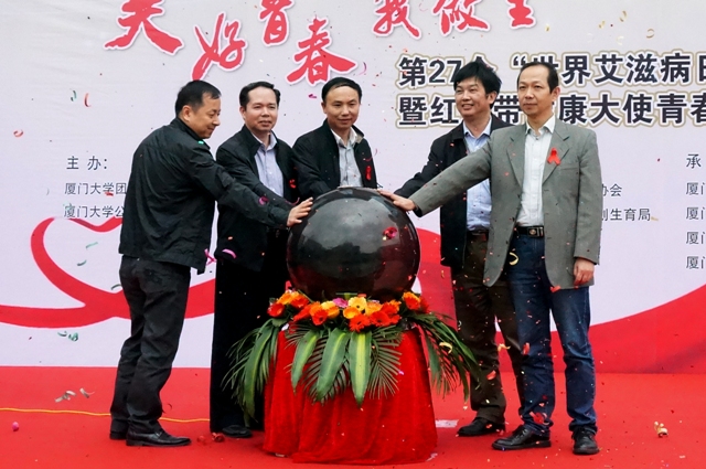 2014年12月1日,第27个“世界艾滋病日”活动暨“美好青春我做主”红丝带健康大使青春校园行启动仪式在厦门大学翔安校区竞丰广场举行。