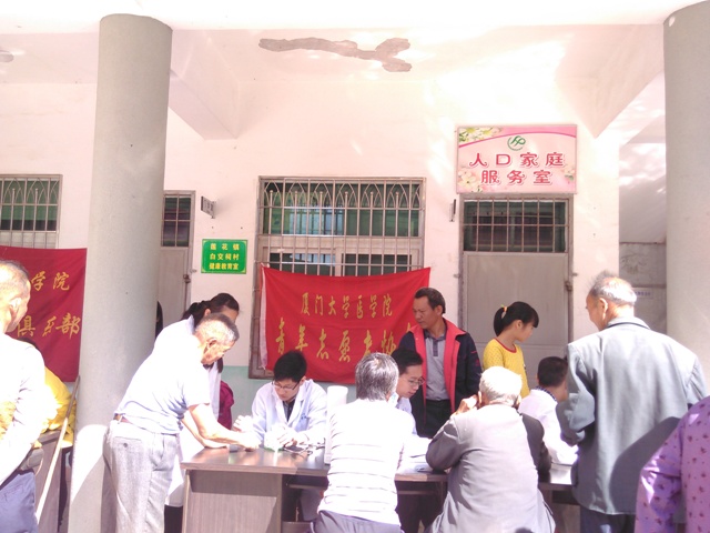 11月22日,由校团委、校友总会秘书处和医学院16名师生组成的医疗卫生志愿服务队,走进厦门市同安区莲花镇白交祠村和军营村,开展医疗卫生下乡志愿服务活动。来自医学院的专业医师和学生志愿者们为当地村民提供义诊服务,并向村委会和村民赠送、分发药品和健康知识宣传手册。