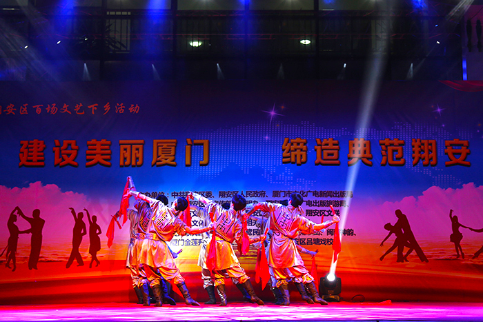 厦门小白鹭民间舞团是中国第一个专业民间舞艺术表演团,是厦门一张亮丽的城市名片。本场演出是“践行群众路线,缔造美丽翔安”——2014年翔安区百场文艺下乡活动之一,旨在丰富校区学生文化生活,推动高雅艺术进校园,满足学生精神文化需求。