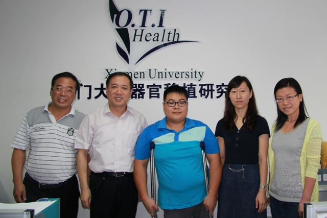 朱茂述,身残志坚,立志从医,几经挫折,终于考入厦门大学医学院,明年即将硕士研究生毕业。朱茂述的导师齐忠权教授向杨书记介绍了他的学习情况,朱茂述入学以来进步很快,克服因长期拄拐导致的手抖情况,完成近300例小鼠心脏移植手术,成功率是所有学生中最高的。医学院党委副书记王晓丽老师介绍了朱茂述的思想和生活情况,朱茂述在过去一年的预备党员考察期内,严格按照党员标准要求自己,并在今年党的生日之际,为全院学生党员做了一场题为“我的庄严誓词,献礼党的生日”的主题报告,报告在全体学生党员中引起了强烈的反响。