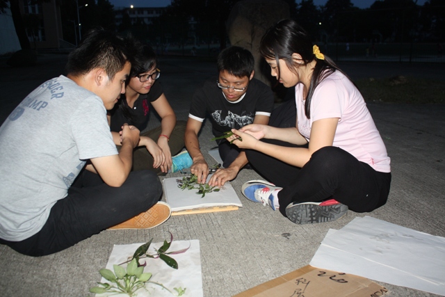 每天清晨,同学们便背着小铁铲、小锄头等采药工具,戴上斗笠等登山行头,带上干粮开始一天的采药之旅,累了,就地休息,同学们即兴表演节目驱散疲倦。在朱铉教授,李振基教授、丘鹰昆、陈全成副教授和武夷山植物研究所杨青等校内外专家的指导下,同学们以小组为单位,边走边学,并将有代表性的植物,如草本、藤本、小灌木等植物小心翼翼地采集起来。夜幕时分回到驻地,晚饭后他们顾不上休息,连夜制作标本并与指导老师热烈讨论。