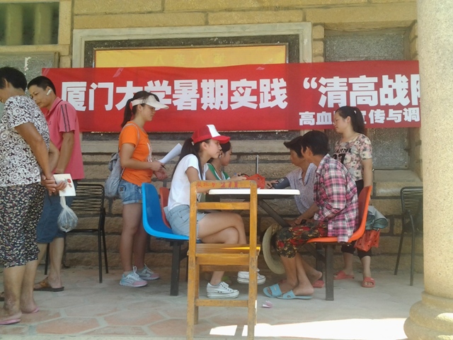 6月23日至7月18日,厦门大学“清高战队”暑期社会实践队开展了以“高血压知识宣传与调查”为主题的实践活动。本次活动得到了医学院团委和各实践单位的大力支持和积极配合,各项工作有条不紊地顺利进行。