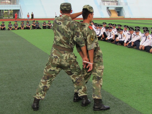 为进一步增强校园安全,不断提升校园安保人员应急能力,6月26日下午翔安校区保卫办特邀厦门市公安边防支队机动大队6名特警全副武装到我校,为校区安保人员开展防暴恐专项培训。校区保卫办干部全程参与训练指导,校区各物业130余名安防队员接受了培训。