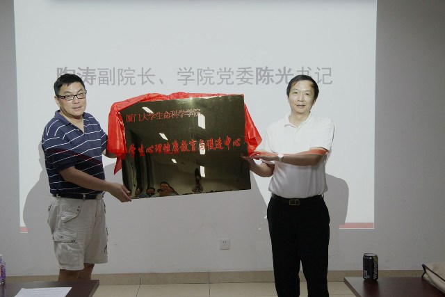 为了进一步加强学院学生的心理健康教育与促进工作,提升学生的心理健康素质,培育学生积极向上的精神风貌和营造充满关爱的学院氛围,5月27日晚上,生命科学学院学生心理健康教育与促进中心成立仪式在黄朝阳楼G208教室隆重举行。厦门市仙岳医院心理科主任、福建省精神病学分会委员刘发荣,研究生院常务副院长陶涛,校心理咨询与教育中心黄福生,生命科学学院党委书记陈光、副书记张伟,副院长周大旺,辅导员,研究生、本科生秘书,课题组实验室研究生心理委员和班级本科生心理委员等参加了仪式。仪式由学院党委副书记左正宏主持。