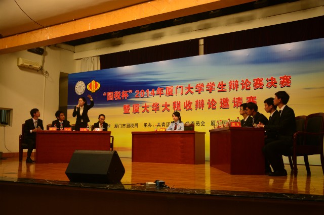 5月20日晚,“国税杯”2014年厦门大学学生辩论赛决赛在法学院模拟法庭拉开序幕.该活动由厦门大学、厦门市国税局主办,是一年一度展现厦大学子智慧与口才的盛会。海洋与地球学院辩队在小组赛的中一路过关斩将,发挥出色,在这场决赛中最终完胜经济学院辩队,一举夺冠。