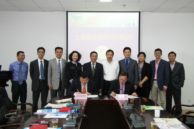 生命科学学院院长林圣彩与上海富吉医疗器械有限公司董事长裴元虎作为各方单位代表签订了正式协议。上海富吉医疗器械有限公司将分六年共捐赠100万元人民币用于生科院大楼B栋五楼学术报告厅的装修及设备更新,捐赠建设的学术报告厅命名为“富吉医疗学术报告厅”。