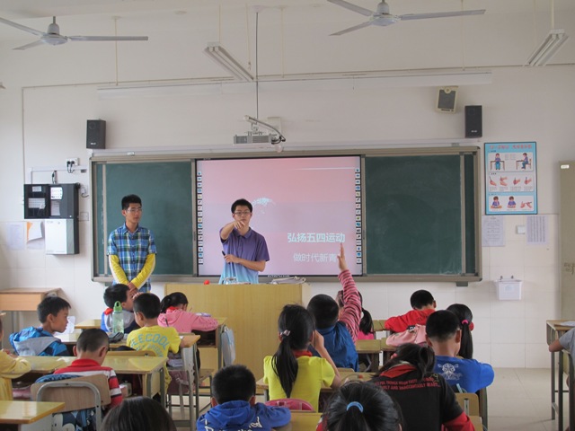 和以往不同的是,这次的内容以“五四”精神为中心,从历史背景、主体精神、继承发展等方面进行宣传教育。为了吸引孩子的注意,达到好的宣传效果,志愿者采取讲故事的方式,通过讲诉五四运动的背景、经过和代表人物等多个小故事,其中穿插问答的互动环节,把严肃的宣讲营造出活跃、开放氛围。让孩子们在积极的参与当中,了解了五四运动的全过程,学习了“五四”精神的主要内容,明白了作为祖国的未来应该如何继承和发扬“五四”精神。同时,在进行宣讲的过程中,志愿者们也对于“五四”精神有了更加深刻的认识和体会。