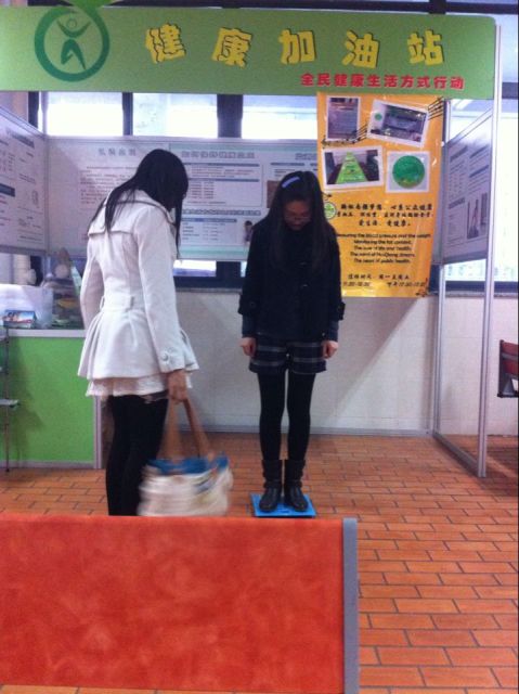 “你的脂肪率属于正常范围,保持正常饮食和身体锻炼就好。”每天中午、下午吃完饭,即将走出食堂大门的时候,总能看到几个同学围着一个在指着仪器讲解数据的同学,这是健康与生活促进会已经持续了第三个学期的“健康小屋”活动。