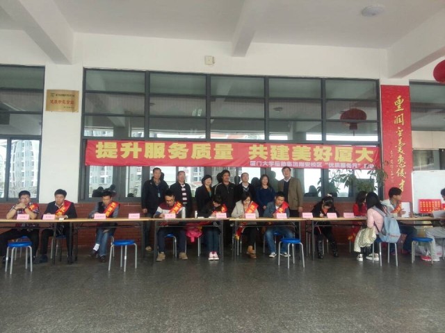 中午11:00,一幅“提升服务质量,共建美好厦大”横幅展现在竞丰餐厅一楼正门前。在十一个后勤咨询点,同学们主要针对饮食、公寓管理、水电服务等方面的问题畅所欲言、建言献策。身披“优质服务月”鲜红绶带的工作人员耐心倾听、微笑讲解,能当场解决的问题给予一一答复,不能当场解决的,细心记录,以便后续的整改落实。