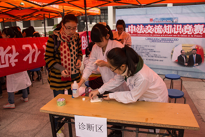 3月16日中午,竞丰广场上,一群穿着白大褂的人在忙碌着,不同于以往在广场上举行的其他活动,这次名为国医节主题义诊的活动将关注的焦点集中在大学生的健康问题上,厦门大学针灸推拿协会的成员为活动参与者提供号脉,针灸,刮痧等服务,现场还有中医常识有奖知识竞答为挑战成功的同学提供花茶等小礼品。