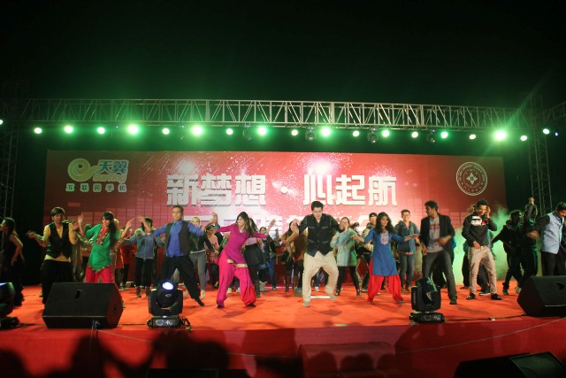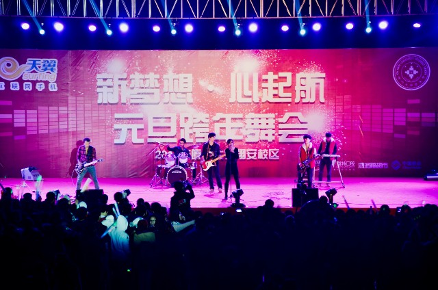 晚8点,“新梦想•心起航”元旦跨年舞会晚会在热烈的欢呼声中正式开始,拉开了近5小时歌舞狂欢的序幕。晚会分为梦想启航、放飞青春、中西合璧、绽放美丽和梦圆翔安五个篇章,各类节目精彩纷呈,亮点颇多。青春洋溢的啦啦操,火红的花球律动出青春的色彩;富有民族风情的乌克兰舞、哈萨克舞带来不同文化的独特魅力;酷炫的夜步舞和街舞像有魔力一般抓住观众的视线,点燃全场的激情。《翔安大事记》《校长祝福视频》的播放,将大家的思绪带回到2013,回顾翔安校区所取得的骄人成果。晚会上,互动主持人用他们的幽默拉近了舞台上下的距离,微信摇奖、学习B-BOX、学习印度舞蹈等互动更是让现场欢笑连连。零点倒计时将晚会推向了高潮,绚丽夺目的烟花表演点亮了翔安的夜空。在场观众在主持人的引导下共同分享了八层大蛋糕,默默许下心愿,欢笑声响彻现场。最后,大家在互动主持人的带领下跳起了兔子舞,台上台下融为一体,长长的人龙既壮观又温馨,所有人都沉浸在一片欢乐的海洋之中。