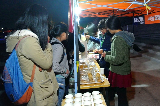 除了可以玩,可以看,活动会场还有众多美食可以品尝。由校会与美食协会共同承办的美食乐园活动向同学们提供丰富小吃,包括布丁、蛋糕、麻糍等,让同学们在参与游戏,观看演出的同时能享受到美食。除此之外,美食乐园还会定时向大家供应热食,在寒冷的冬天为参与活动的同学提供热腾腾的食物。活动分为预备跑、小吃起飞、Pizzatime、新年气息四个环节,一直持续到深夜,六个美食摊位总共派发各种小吃2500余份。一位体验者说:“供应的食品热气腾腾的,很贴心,很美味。”另一位体验者边吃着刚出锅的爆米花边欢快地说:“内心充满了满足感!”