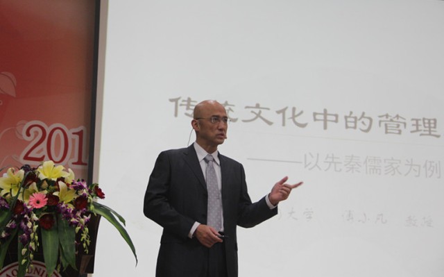 随后,同学们聆听了由厦门大学管理学院傅小凡教授为侨生们作的题为《传统文化中的管理思想——以先秦儒家为例》的专题讲座。傅小凡教授深入浅出的分析了孔子、孟子、荀子三位先哲的主要思想与管理理念,生动地阐述了传统文化对于当今社会治理等方面的影响及积极的借鉴意义,为侨生们提供了一场学术盛宴,在华人子弟中产生了巨大共鸣。
