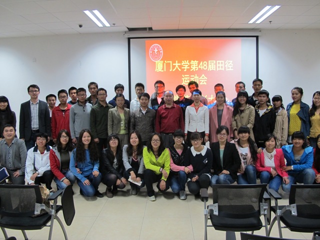 在我校举办的第48届学生田径运动会中,医学院学生齐心协力,奋勇拼搏,获得了全校本科生组第三名,学生团体总分第四名、体育道德风尚奖、2012-2013年度厦门大学体育先进学院的好成绩。为进一步发扬这种“敢拼能赢”的精神,11月28日下午,医学院在爱礼楼104室举行“厦门大学第48届学生田径运动会医学院表彰大会”。医学院党委书记邵鹏飞、党委副书记王晓丽,院团委全体老师、本科生代表和研究生代表200余人参加了此次会议。会议由院党委副书记张清榕主持。