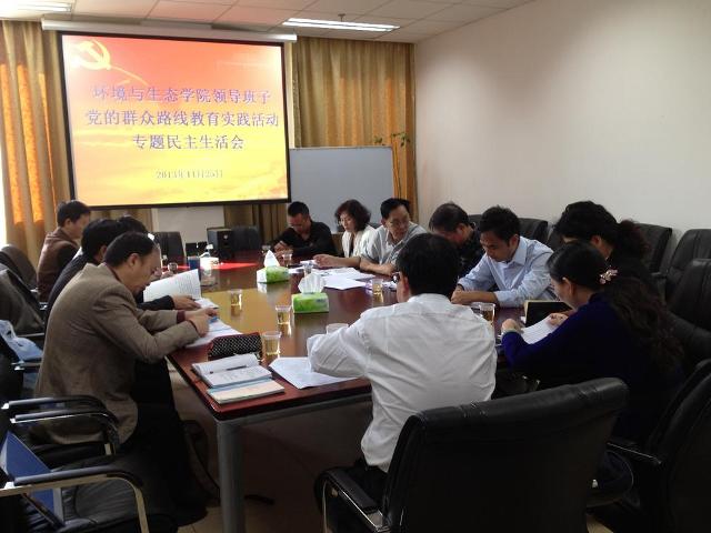 11月25日上午,环境与生态学院在环生楼A220会议室召开领导班子党的群众路线教育实践活动专题民主生活会。校第六督导组组长杨敬达、督导组成员黄田、曾永捷等莅会指导,学院党政领导班子全体成员参加会议,会议由学院党委书记沈小平主持。