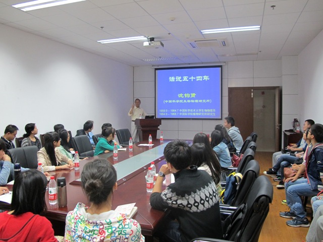 沈先生说道:“科研是技能的训练和思维的训练,在科研中要学会发现问题并自己钻研;而学习要学会融会贯通。”并告诫同学们时间宝贵,要珍惜多学,还要有创新意识,勇于怀疑,不断提高自己的动手和思维能力。