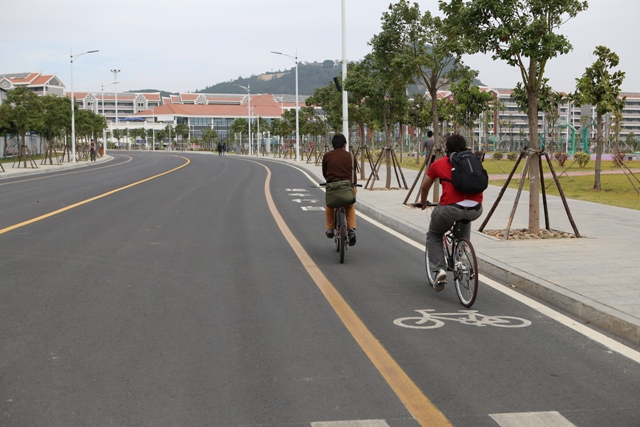 近日,翔安校区道路标线工程初步竣工验收,自行车专用车道投入使用。