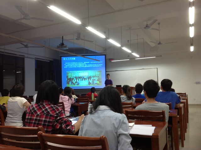 此次交流会由医学院2010级临床医学系的西藏定向生马佰凯同学主讲。马佰凯说:“我身为西藏定向生,决心要在毕业之前到西藏走一趟,并对西藏进行初步的考察,以便更好地规划自己的学业职业生涯发展。今年暑假,我只身前往西藏探访校友,了解了西藏的风土人情、工作环境、社会发展等状况……我知道其他的西藏定向生也一定急于了解这些信息,我也乐意与大家分享这些信息。于是,在医学院就业拓展中心的帮助下,举办了今天这场分享交流会……”