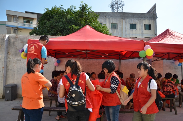 下午15:00时,游园活动正式开始,随着社区腰鼓队的精彩表演,现场的气氛不断被推向高潮,志愿者积极引导老人来到各个组进行活动,妙趣横生的游戏让社区的老人们赞不绝口。夹弹珠比赛、投篮游戏,超级保龄球、套圈游戏等一系列活动深受老人们的喜爱。另外,由于参与人员较多,志愿者还积极充当了排队秩序的维持者。虽然当天活动是正午进行,但志愿者们不停地忙碌在各自的岗位上,贴横幅,搬物资,引导疏通,维持秩序,随处可以看见穿着红色志愿者服的厦大志愿者。活动尾声,同心慈善会带来了精彩的健康操和手语表演,志愿者也纷纷参与其中。