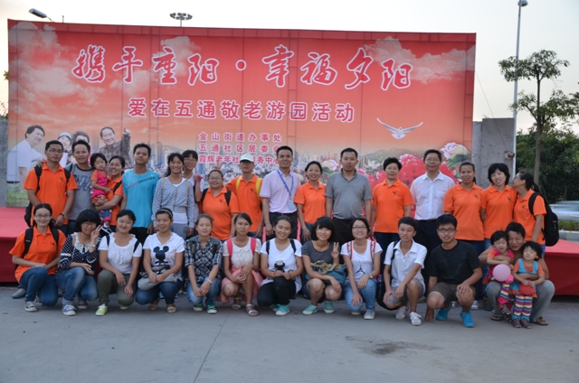 2013年10月13日,由霞辉老年社会服务中心和厦门大学生命科学学院青年志愿者行动指导中心共同举办的 “欢度重阳—乐游园”活动在厦门市湖里区五通社区正式展开。厦门市湖里区五通社区干部以及五通社区工作人员也出席了此次游园活动。活动旨在围绕重阳节“尊老、爱老、养老”的主题,发扬中华民族的传统美德。