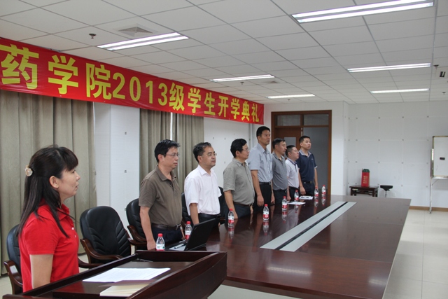典礼在庄严的国歌声中拉开序幕。丁昌利书记首先简单介绍了学院2013级新生的情况。她说,2013年药学院迎来了140名新生,其中本科生87名,硕士研究生43名,博士研究生10名。他们来自于16个不同的民族,少数民族学生数超过20人。