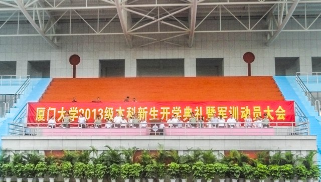 厦门大学2013级本科新生开学典礼暨军训动员大会在翔安校区运动场于2013年8月29日上午召开。