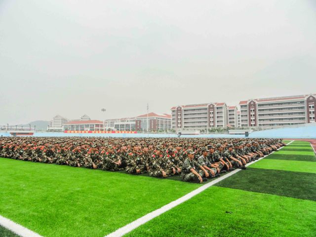 在长达两个多小时的大会中,全体士兵以超人的毅力在操场上纹丝不动地端坐着,他们嘴唇紧抿,眼神坚毅,表情严肃,操场上寂静无声,这不仅表现出军人严谨,认真的作风,也表达出新生们对大学生活认真的态度。