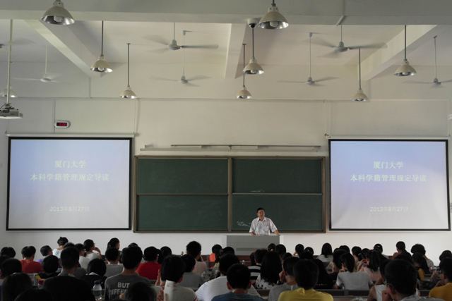 8月25日-28日,在翔安校区主楼1号楼C401,国际学院为2013级新生开展了一系列入学教育讲座,包括新生入学适应教育、学生管理规章制度、校史校情、教务管理制度、各项目课程介绍会等。