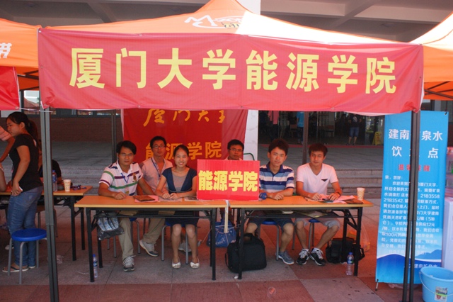能源学院于2013年招收首届“新能源科学与工程”专业本科新生。为了营造隆重喜悦的迎新气氛,能源学院的老师和研究生从7月初就开始精心筹划迎新工作,共同讨论迎新标语、设计海报、制作宣传板报,学院大厅安装迎新电子屏,建立2013级本科新生QQ群,并在网络上积极联系即将来到的新生,提前解答新生的各种问题,介绍厦门大学和翔安校区的学习生活情况。在新生到来的一个多星期前,学院老师和研究生志愿者就在校区布置迎新场景,在能源学院大楼墙上挂起迎接2013级新生的欢迎横幅和竖幅。这些工作起到了良好的效果,让新生一进校门就感受到能源学院浓浓的大家庭气氛。