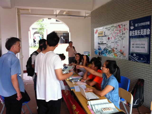 下午,学院党委书记黎永强,副书记陈夷、丁昌利等专程前往新生宿舍,挨间看望新生及家长,并与他们热情交谈,询问来校后的适应情况、家庭经济情况等一系列与学生密切相关的问题。学生家长们得知学院领导如此重视和关心同学们的学习与生活,都感到十分欣慰,认为厦大和药学院以学生为本,周到为学生成长服务的工作理念让他们完全没有了后顾之忧,能踏实放心的将学生托付给学院培养。