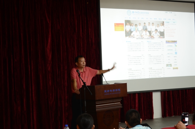 院长林圣彩首先上台致辞。他对2013级新生的加入表示祝贺,对家长的到来表示热切欢迎。他从生命科学和生物技术的蓬勃发展,国内外高端生物学人才紧缺的角度阐释了生物学科所蕴含的巨大就业潜能和发展活力,并提醒家长不必为孩子就业问题而担忧。他认为,研究生命科学的学生在其学习和实践的过程中,各方面都能得到培养和锻炼,有助于塑造全面发展型人才。林圣彩院长还呼吁家长们要转变思维,帮助孩子跳出高考模式而带来的定式思维,并希望家长能与学院保持密切联系,积极发挥学校与学生沟通交流的桥梁和纽带,加强互动,从现在开始一起关注孩子们的思想动态及学习生活情况;多提意见建议,多关注学院未来的发展建设,积极配合和支持学院的工作,共同发挥学校、家庭、社会的积极性,把孩子们培养成为具有深厚文化底蕴、扎实专业知识、强烈创新意识和宽广国际视野的栋梁之材和社会精英。