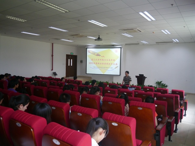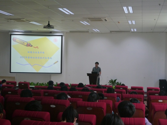 为深入贯彻落实教育部《关于进一步加强高校实践育人工作的若干意见》等文件精神,鼓励在校大学生积极投入社会实践,引导广大青年学生在实践中了解社会,认识国情,增长才干,贡献社会,同时引导广大学生将专业理论知识和实践技能相结合,更好的学以致用,在院党委和校团委的高度重视和大力支持下,5月24日下午,环境与生态学院团委在翔安校区环生楼B103会议室组织召开2013年暑期社会实践动员大会,全面部署2013年暑期社会实践工作。今年,环境与生态学院暑期社会实践的主题是“寻梦中国,感悟成长”。院党委副书记周克夫,院团委书记林明华出席了会议。2012年优秀暑期社会实践团队代表、2011级学生代表、2012级全体学生参加了会议。