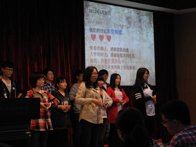 相比较下,大三年级的展示则更贴近于他们三年生活中的点点滴滴。他们以幽默戏谑的风格,将平时的生活情景,实验室中的苦中作乐,以及同学之间三年的默契和情谊以创意视频,现场演示,图片回放等形式展现出来,让人在捧腹大笑的同时也感受到他们已经积攒下的深厚友情。