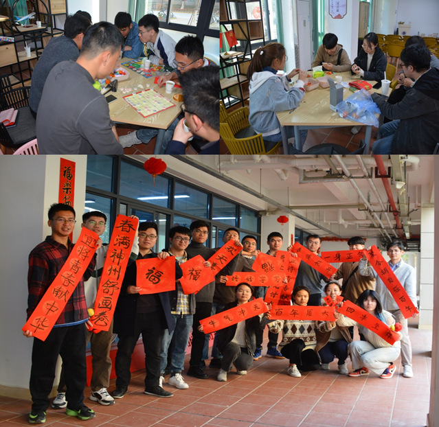 在忙碌的除尘布新活动以及春联DIY比赛后,另一趣味性环节茶话会开始进行。大家在学习共享空间内围坐一起品茶吃水果,其乐融融地聊着过去一年的收获成长,并畅谈对新的一年的期待,随后在各类益智游戏中感受着浓浓的过年气氛。