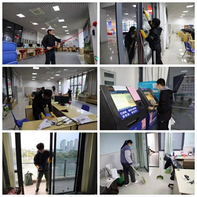 师生准时在学生事务大厅集结,领取劳动工具,制作除尘帽,做好各项准备工作。“大扫除”的号角吹响,老师们和学生助理纷纷动手劳动。有的使用长扫帚、鸡毛掸清除墙角的蛛丝和灰尘,有的用抹布清洁玻璃门和桌子,有的整理桌上杂物和文件,还有的扫地和换水。各办公室涌动着老师同学们忙碌的身影,他们分工合作、紧密配合,清理楼道杂物和卫生死角,争取做到不留死角、不留盲区。虽然天气格外寒冷,但是师生干得热火朝天,其乐融融,大家一边干活一边愉快地聊天,家是哪里的?回家过年不?什么时候回家呢?车票买了没有?老师们亲切地嘘寒问暖,同学们充分发挥主人翁的精神,向老师纷纷表示作为大家庭一份子很高兴参加除尘布新迎新春活动,既体会到了劳动的价值和快乐,又让办公室焕然一新。