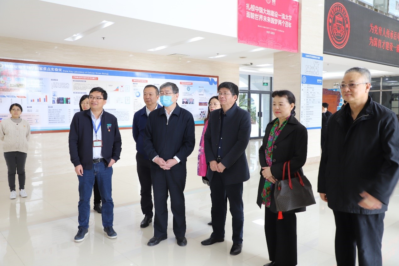 巡回指导组首先来到生命科学学院,听取了生命科学学院党委书记左正宏作党建“双创”工作汇报,参观“党建廊”“院士廊”“名家廊”等院廊文化,深入了解生命科学学院的学科建设、党建工作进展。巡回指导组表示,作为“全国党建工作标杆院系”培育创建单位,生命科学学院党委做了大量工作、取得显著成效,希望学院进一步强化党建引领,把党史学习教育与育人紧密结合起来,进一步创新,丰富活动载体,努力为以史育人工作提供创新经验。