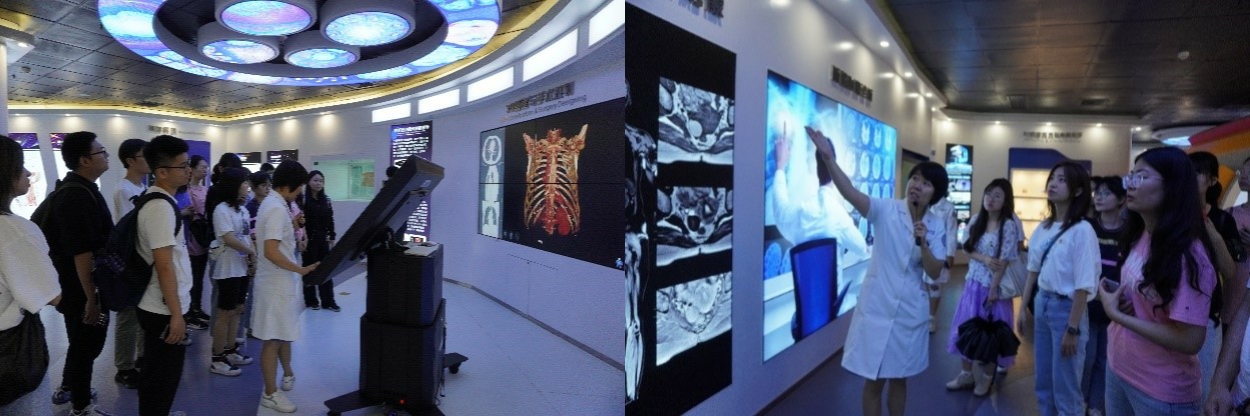 培训结束后同学们参观了培训中心,厦门大学附属翔安医院是全国首批国家临床教学培训示范中心,主要用于医学模拟教学培训,培训对象覆盖公众人员、医学生和专业医护人员。在这里,同学们了解了各个学科先进的医学模拟教学设备和培训内容。随后,同学们来到翔安医院人体生命科学馆参观,张莉莉老师结合3D、VR、AR、全息影像等高端技术和展馆内的各种珍贵的塑化人体标本向同学们详细介绍了人类胚胎发育过程和人体精妙的组织结构,让同学们深刻的感受到生命的珍贵和对医学的敬畏。