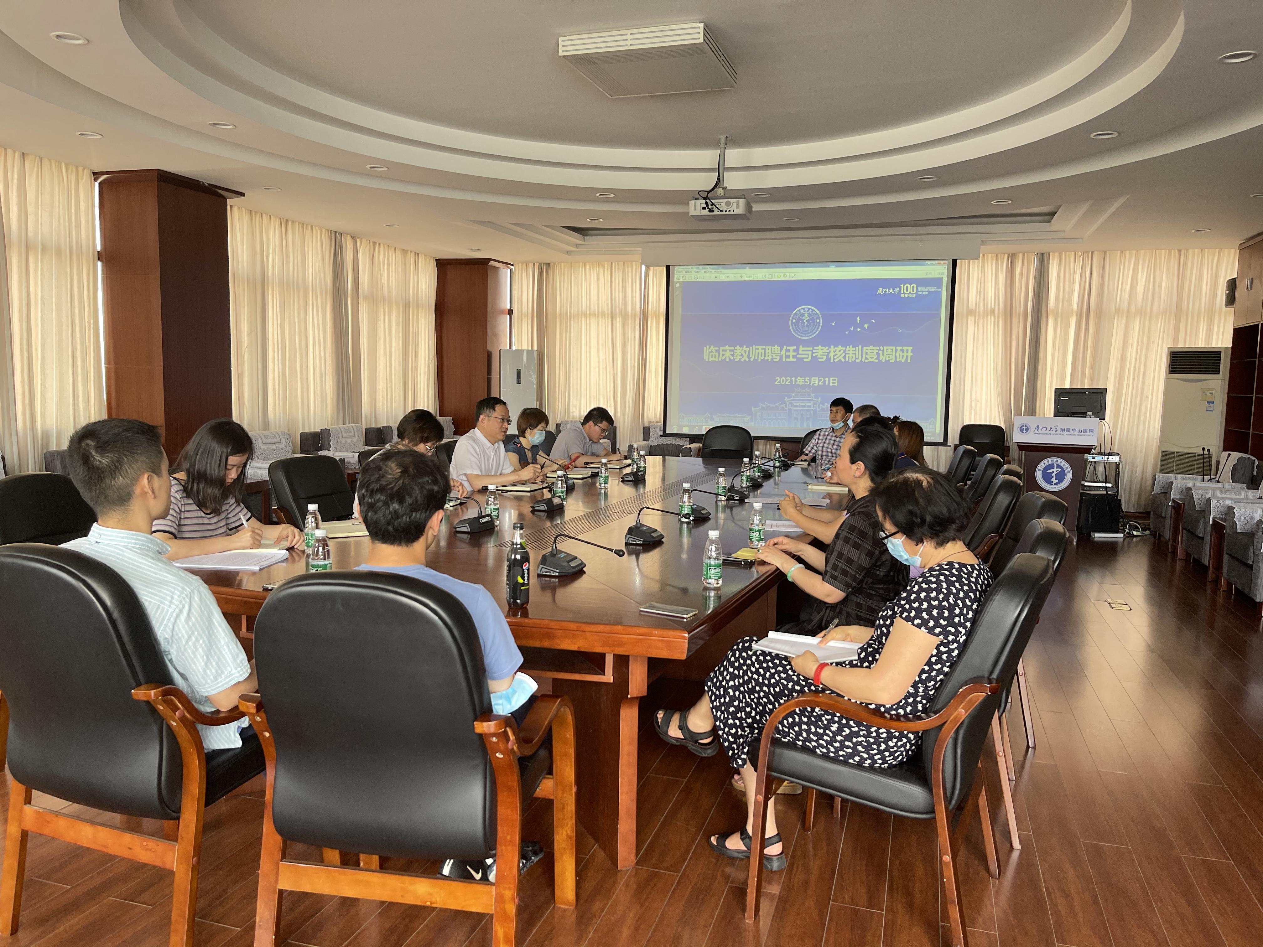 随着党史学习教育的深入推进,医学院党委“我为师生办实事”实践活动扎实开展,2021年5月17日和21日,医学院副院长李炜教授带队分别前往附属第一医院和附属中山医院开展临床教师聘任与考核制度调研。医学院人事部门、教务部门相关人员,附属医院领导、相关职能部门及临床教师代表参加调研座谈会。