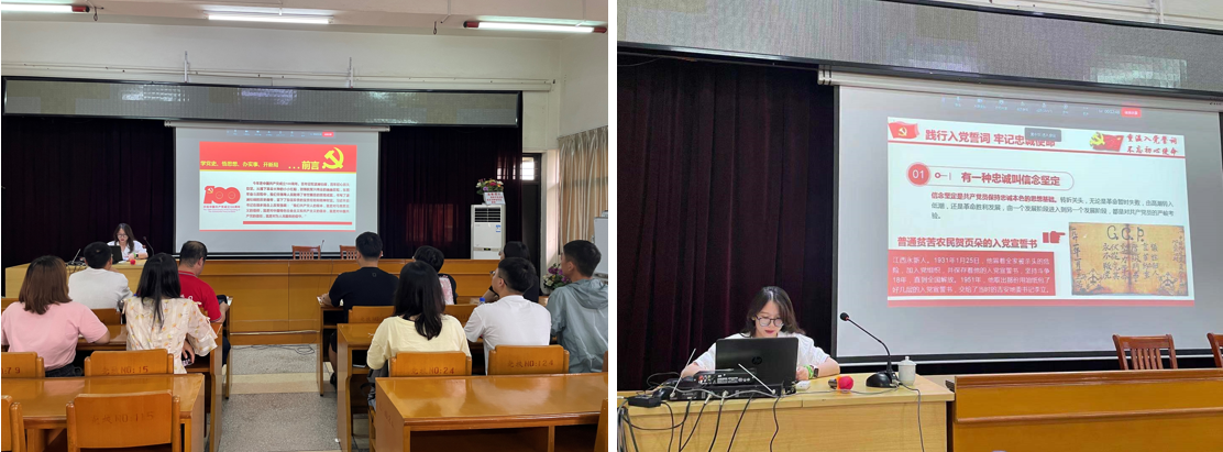 陈琼昀以“重温入党誓词 践行初心使命”为主题讲授党课,详细讲解土地革命、抗日战争和解放战争等不同时期入党誓词的改变,及共产党人践行誓词、忠诚信念的可歌可泣事迹,强调党与时俱进的精神品质,强调党“为中国人民谋幸福、为中华民族谋复兴”的初心。陈琼昀表示支部党员应为实现党的任务履职尽责、无私奉献,涵养“坚如磐石”的政治定力,坚定“逢山开路”的决心意志。
