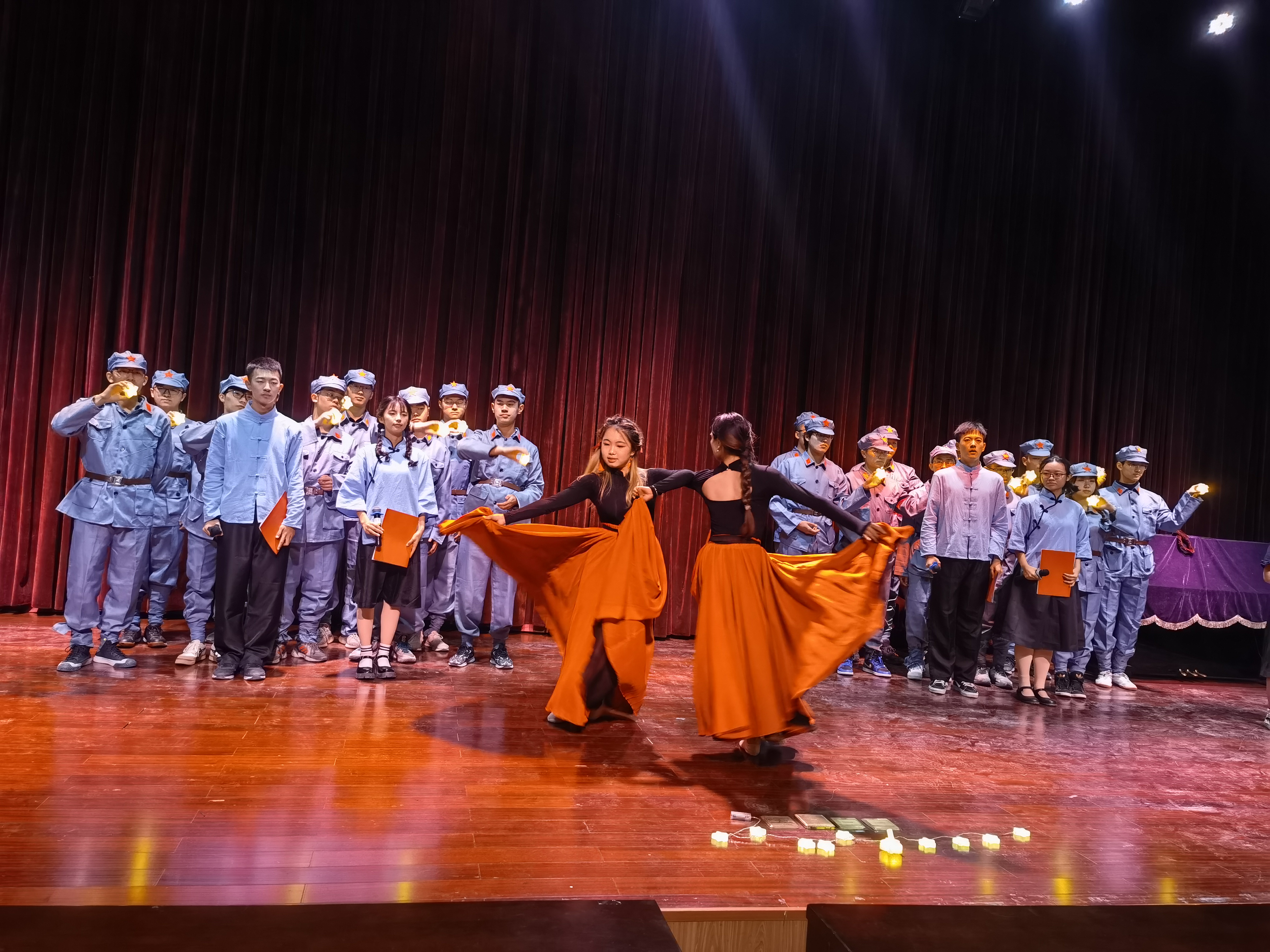 辅导员刘茜、成炘儒与大一学生带来群诵《党的赞歌》,深情礼赞中国共产党一路走来的不懈奋斗与伟大斗争精神。辅导员熊剑龙激情演绎歌曲《大中国》,传递了对祖国繁荣昌盛的衷心祝愿。