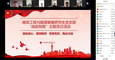 3月21日,能效工程与能源装备研究生党支部开展“战疫有我”线上主题党日活动,并邀请学院党委书记张军奎作动员讲话。