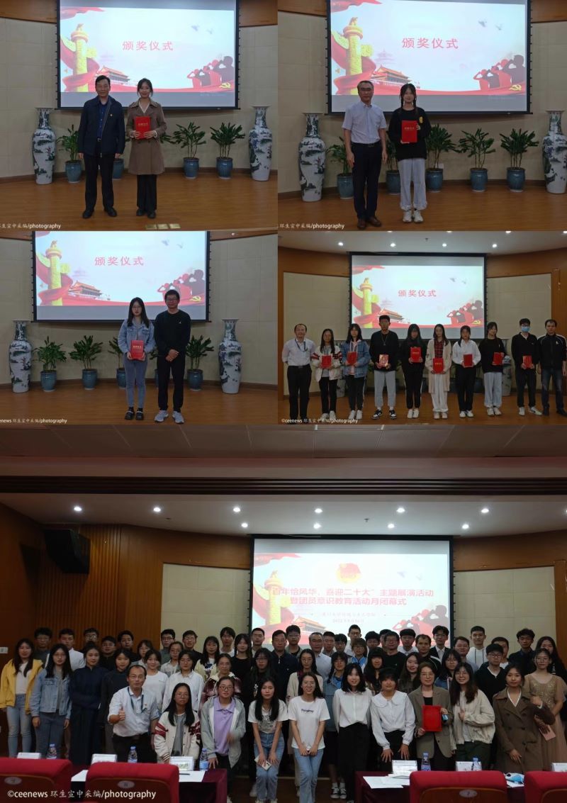 经过现场投票评选,2021级硕士第二团支部的《入党申请书》获得“最佳创意奖”,2021级本科生第一团支部的《建党伟业》获得“最佳展示奖”,2021级硕士第三团支部的《俞秀松家书》获得“最佳组织奖”。会上还颁发了团员意识教育活动月中的优秀团支部和优秀个人,2020级本科生第三团支部和2021级本科生第一团支部获评“优秀团支部”,程秀娟等6名同学获评“优秀个人”。