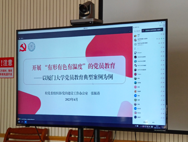 为贯彻落实习近平总书记关于做好党员教育工作的重要论述,4月15日,厦门大学党委组织部/党建办、党委党校以线上、线下相结合的方式联合举办党委党校(第213期)学生党支部书记、副书记、委员党务工作能力提升班。我院各学生党支部书记、副书记、委员参加培训。