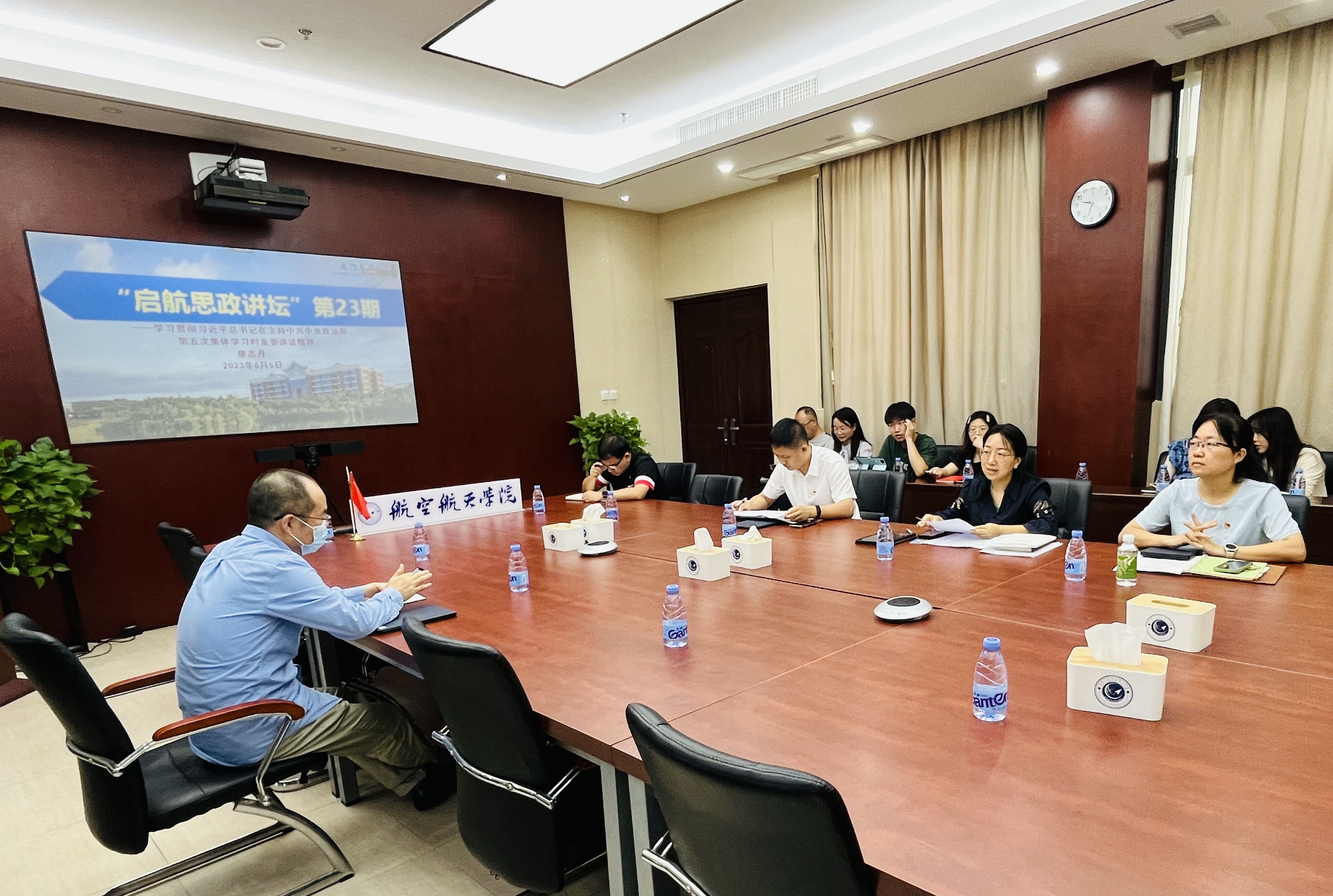 在交流环节,尤延铖表示,习近平总书记在中共中央政治局第五次集体学习的重要讲话深刻阐释了“加快建设教育强国”的重大战略问题,为我们推进高等教育现代化指明了前进方向,提供了科学指导和根本遵循。我们必须坚持党对教育事业的全面领导,瞄准世界科技前沿和国家重大战略需求推进科研创新,大力加强学科交叉和产教融合,不断提升原始创新能力和人才培养质量,培养心怀“国之大者”的拔尖创新人才,为加快建设中国特色、世界一流的大学和一流学科不懈奋斗。学院团委书记沈鑫谈到,作为高校辅导员,我们要培养理想信念坚定、永远听党话、跟党走,综合素质过硬、创新能力显著的创新人才,才能培育出源源不断的大国工匠、能工巧匠,为实现中华民族伟大复兴贡献力量。