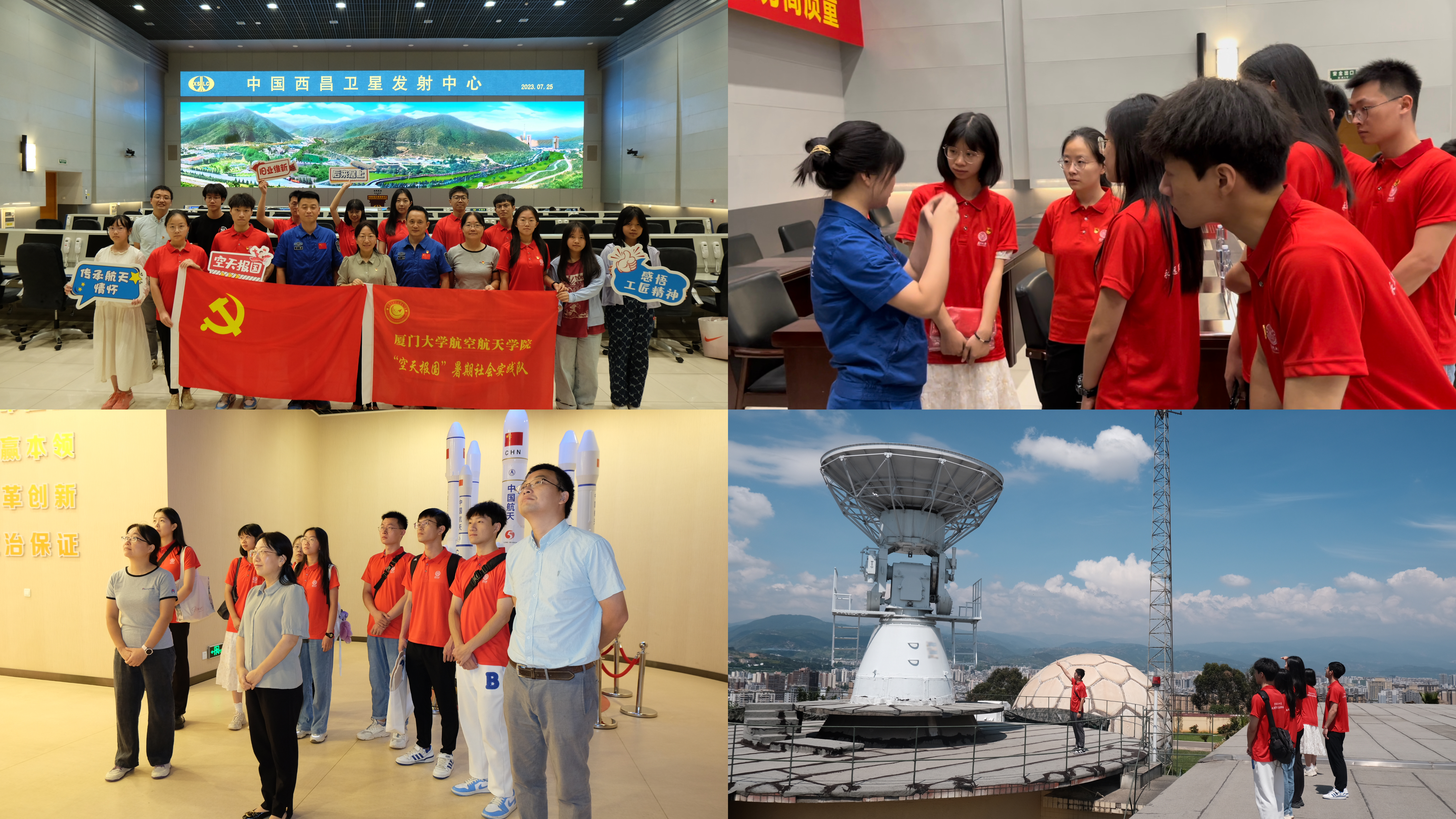 为深入开展学习贯彻习近平新时代中国特色社会主义思想主题教育,践行“空天报国”理念,弘扬航天精神,探寻中国航天事业的光辉历程,7月25日-27日,航空航天学院“空天报国”实践队一行前往西昌卫星发射中心,开展暑期实践活动。实践队由航空航天学院党委书记廖志丹、党委副书记林蔚、团委副书记水永生带队,学院2023年度“航院之星”获得者代表和优秀学生代表参加。