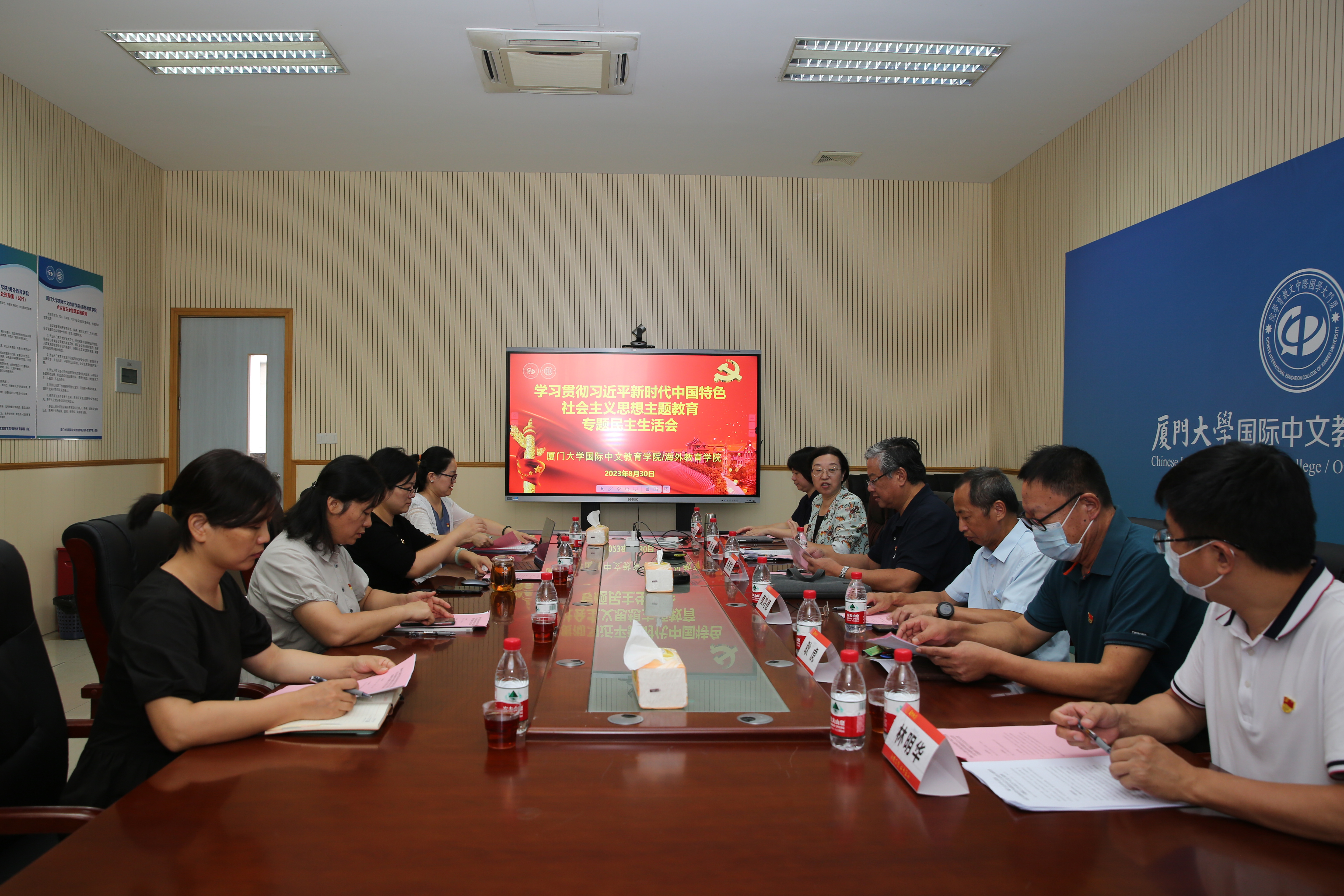 根据校党委部署要求,8月30日,国际中文教育学院/海外教育学院召开学习贯彻习近平新时代中国特色社会主义思想主题教育专题民主生活会。会议紧紧围绕学习贯彻习近平新时代中国特色社会主义思想,聚焦“学思想、强党性、重实践、建新功”总要求,对照“凝心铸魂筑牢根本、锤炼品格强化忠诚、实干担当促进发展、践行宗旨为民造福、廉洁奉公树立新风”的目标任务认真开展。学校主题教育第四巡回指导组组长毛通文、基层党建工作联络员黄鸿德到会指导。学院党委书记范丽主持会议,学院班子成员参加会议,学院有关同志列席。