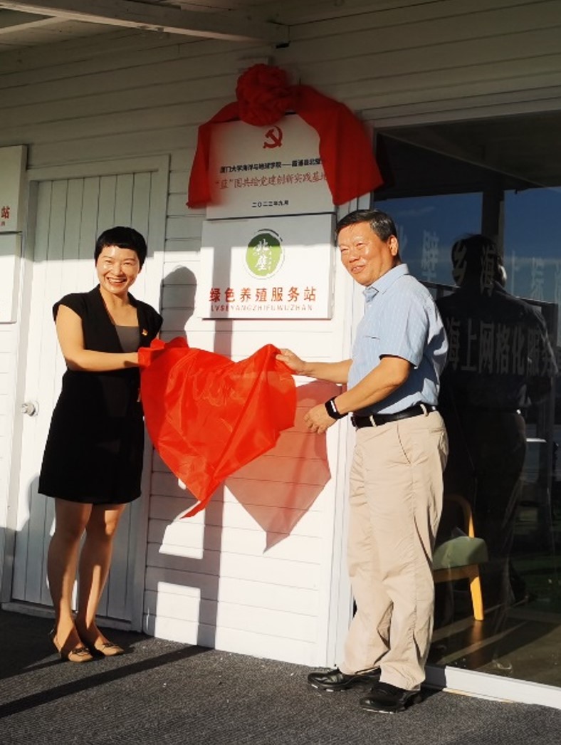 紧接着,吴立武和林彦伶共同为厦门大学海洋与地球学院—霞浦县北壁乡“蓝”图共绘党建创新实践基地揭牌。