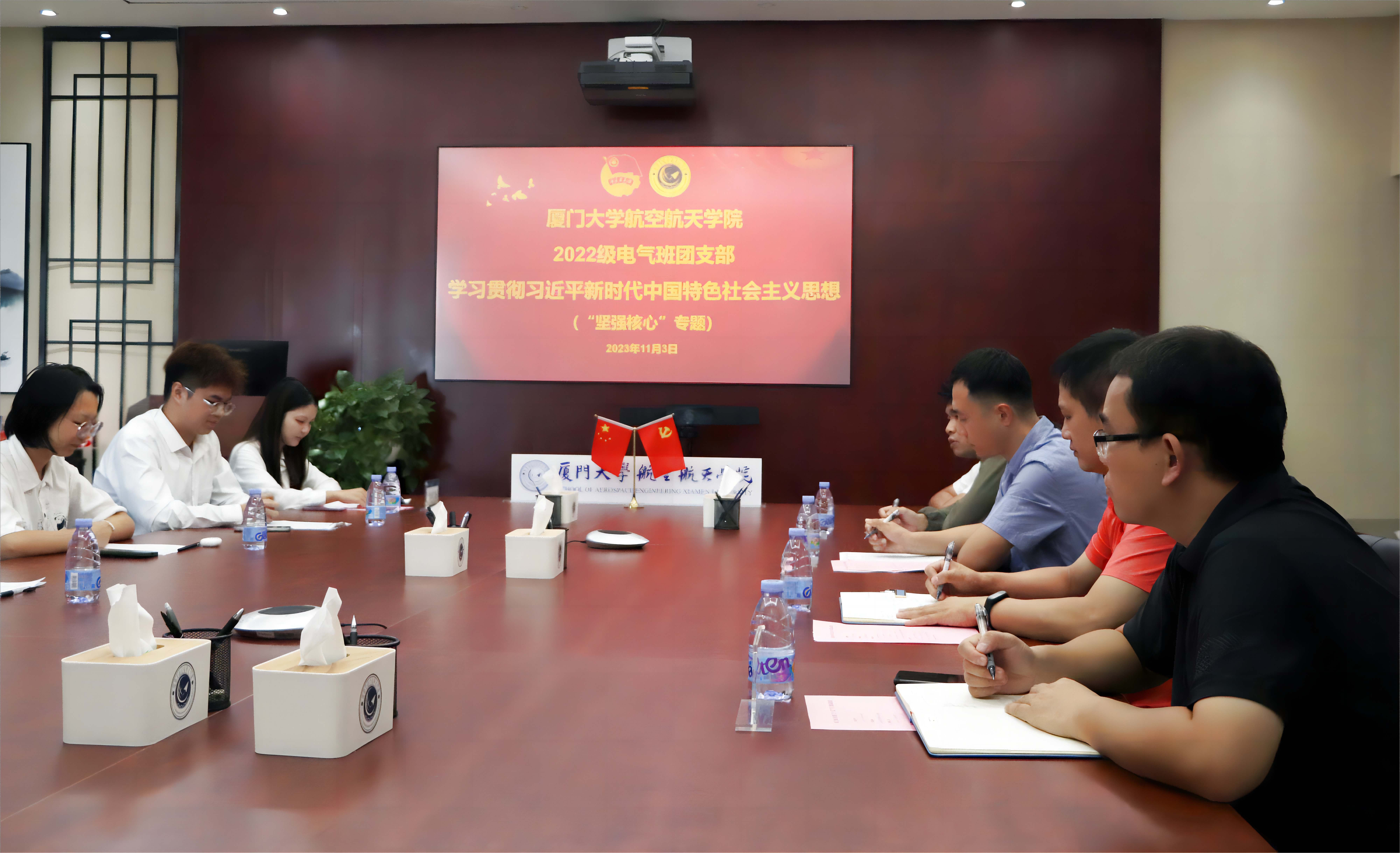 为深入学习贯彻习近平新时代中国特色社会主义思想,全面学习宣传贯彻党的二十大精神,增强团员青年的责任感和使命感,11月3日上午,厦门大学航空航天学院2022级电气班团支部在院楼501会议室举行团员和青年主题教育第二专题“坚强核心”专题团课学习。校团委副书记吴光锡、学院党委副书记王寒、学院团委书记沈鑫及全体2022级电气班团员和青年参加学习。活动由团支书刘可凡主持。