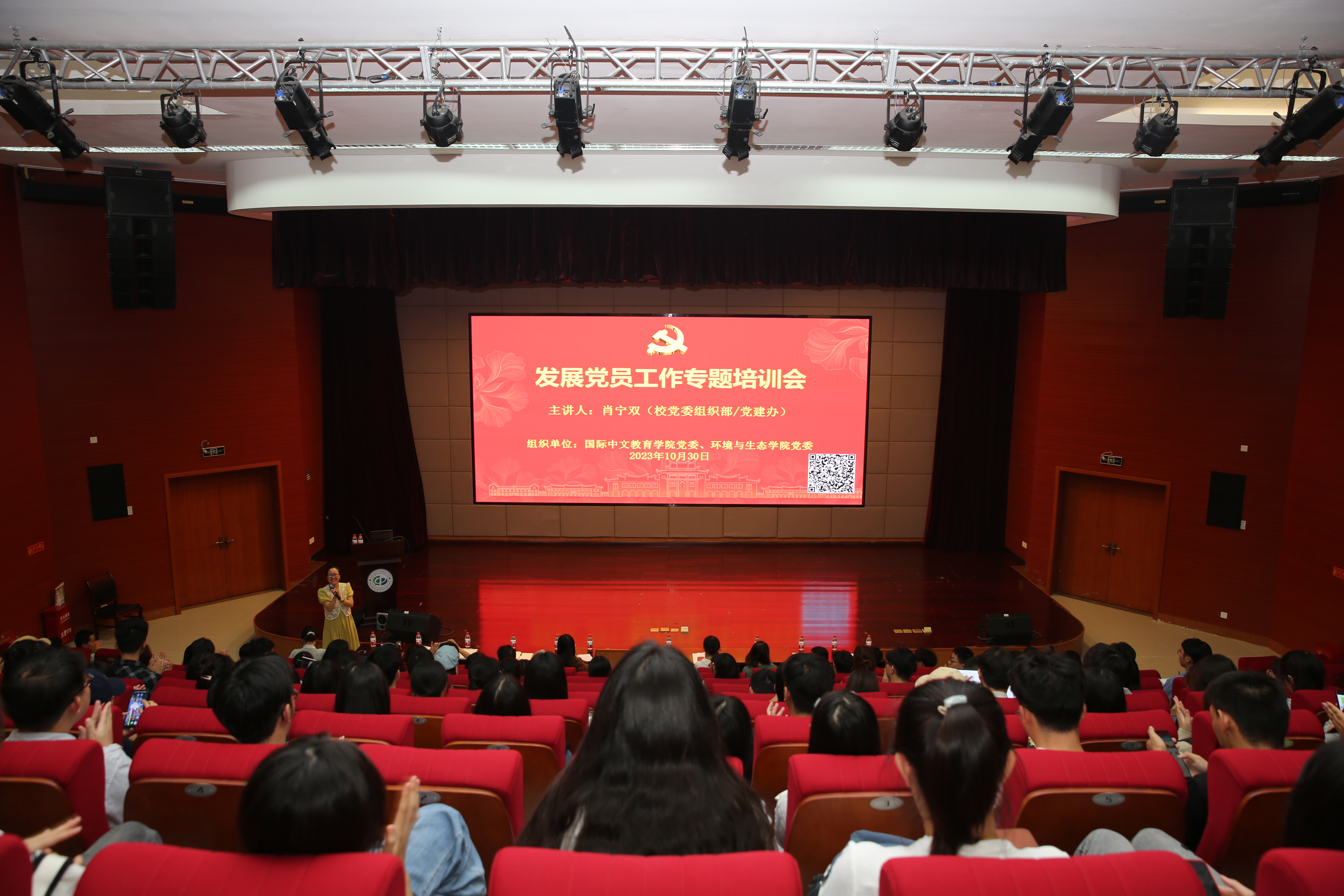 为促进发展党员工作规范化、标准化,切实提高基层党支部工作的质量和实效,10月30日下午,在坤銮楼B102报告厅,国际中文教育学院/海外教育学院、环境与生态学院联合邀请校党委组织部/党的建设工作办公室干部肖宁双老师作了题为《发展党员“三严”工作法分享》的讲座,翔安校区各学院基层党支部委员、预备党员、入党积极分子代表参加本次党课学习。